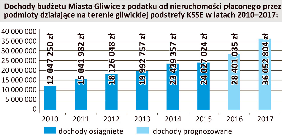 i 6 deweloperów, którzy zatrudniają łącznie 23,8 tys. osób. Fabryka Opla, która była pierwszym inwestorem w strefie, stała się motorem napędowym rozwoju Gliwic. Po tej inwestycji przyszły kolejne. – Mamy dobrą reputacje, dlatego inwestorzy bardzo chętnie wybierają naszą podstrefę na lokalizację swoich firm i zakładów. Możemy wybierać inwestycje, na których najbardziej nam zależy, które mają najbardziej zaawansowaną działalność biznesową, opartą na najwyższych technologiach, które zatrudniają wykształconych pracowników oferując im dobre warunki. Gliwice dobrze zarabiają, a inwestorzy wnoszą podatki do miejskiego budżetu– dodaje Zygmunt Frankiewicz. Inwestorzy nie interesowaliby się Gliwicami, gdyby nie korzystne warunki, które wielkiemu biznesowi stwarza miasto. To przede wszystkim zaplecze inwestycyjne – nowoczesna infrastruktura.